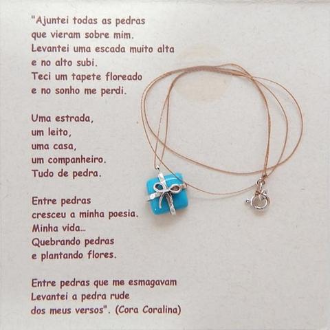 Peça da Coleção Le Poème: montado no fio de seda tamanho 40cm – tamanho adulto -, ajustável manualmente e cuidadosamente embalado com poema anexo em papel reciclável e envelope pardo. Banho ródio.