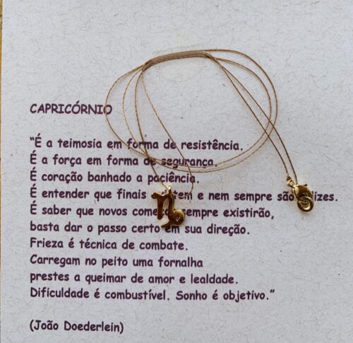 Peça da Coleção Le Poème: montado no fio de seda tamanho 40cm – tamanho adulto -, ajustável manualmente e cuidadosamente embalado com poema anexo em papel reciclável e envelope pardo. Banho ouro 18k