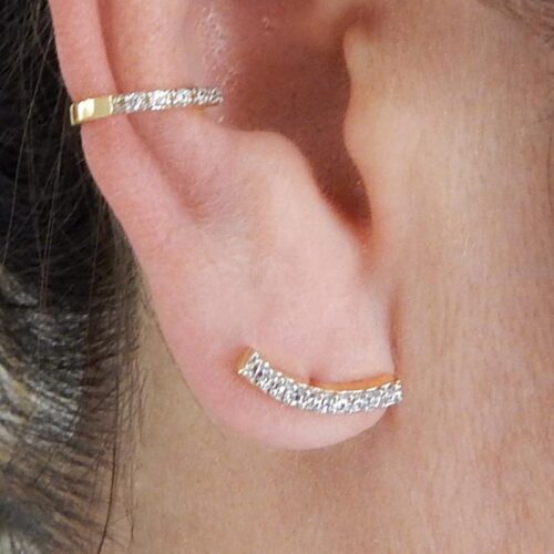 Falso piercing semi joia. Unilateral, de fácil encaixe e ajustável.1 fileira em microzircônias.