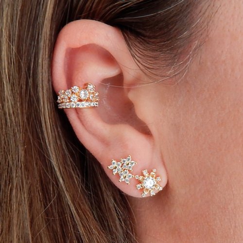 Falso piercing semi joia. Argola encaixável, unilateral, ajustável e sem furo, toda em pontos de zircônia.