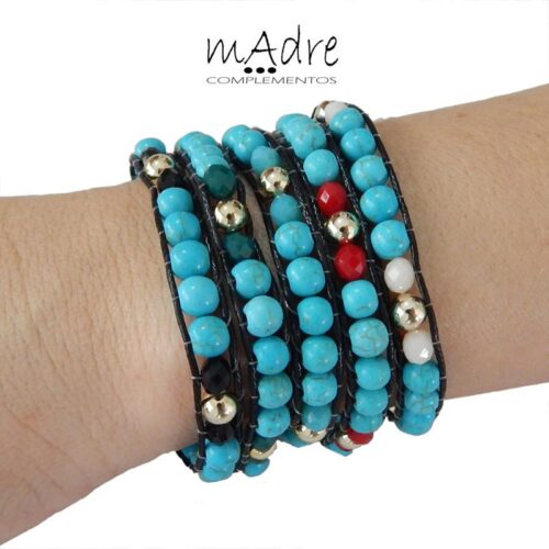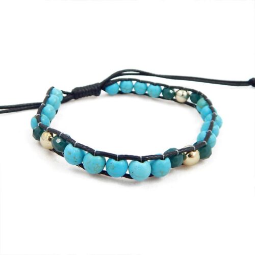 Pulseira bijuteria modelo shambala. Contas em cores sortidas predominando o turquesa e cores alternadas. Ajustável.