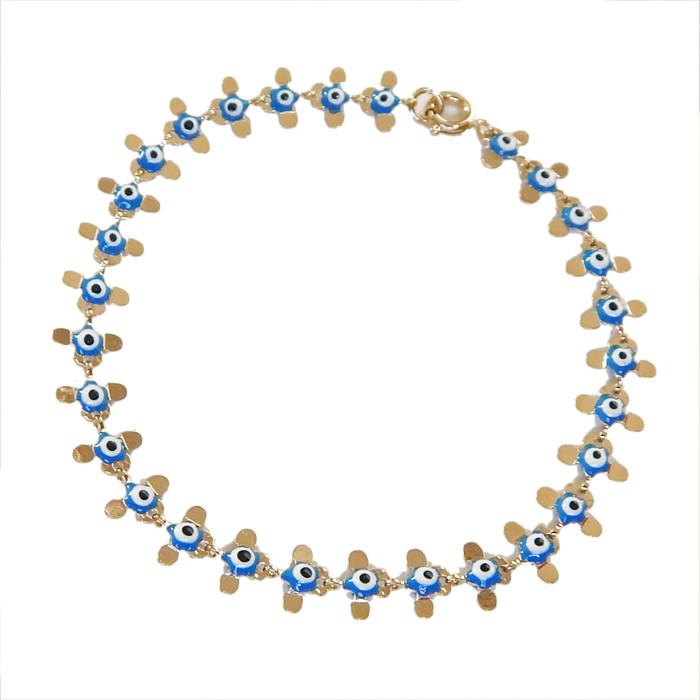 Pulseira semi joia banho de ouro 18k. Corrente toda olho grego.