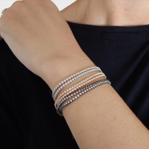 Pulseira semi joia. Volta dupla toda em mini strass. Versátil, podendo ser usada também como choker. Alongador e franja dupla com pontos de luz.