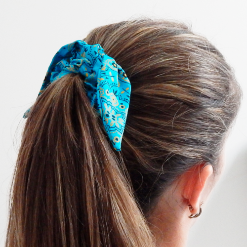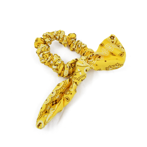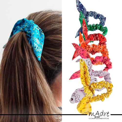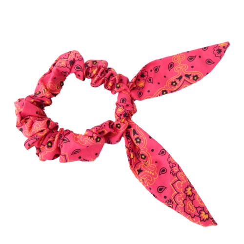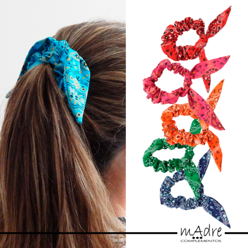 Elástico de cabelo em algodão. Estampa cashmere. Pontas do mesmo tecido. Uso adulto e infantil.