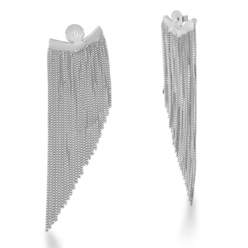 Tarraxa avulsa semijoia banho ródio. Modelo franja longa, toda em correntes venezianas e em tamanho degradé. Para qualquer tipo de brinco de pino ou bottom.