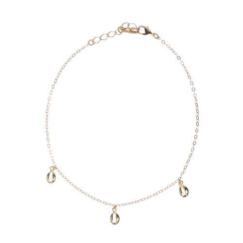 Tornozeleira semi joia banho ouro 18k. Berloques 3 mini búzios lisos.